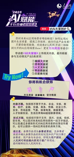 大賽採用“多元賽道”賽制,分為以下三類: “場景突圍”應用創新賽:重點關注人工智能技術在細分場景中的深度落地情況,鼓勵參賽團隊提交“短平快”且具備可擴展性的創新方案,推動技術與實際需求實現“無縫對接。 “揭榜挂帥”產業命題賽:以攻克產業核心技術為目標,圍繞各產業關鍵瓶頸問題定向“發榜”,吸引眾多團隊“揭榜攻關”,助力產業鏈強鏈補鏈。 “AI大家創”全民挑戰賽:聚焦人工智能技術與各行各業的深度融合,廣泛發動國內外公眾這一使用A1、暢想Al未來的社會力量,共同書寫人工智能與千行百業共生共榮的未來答卷。